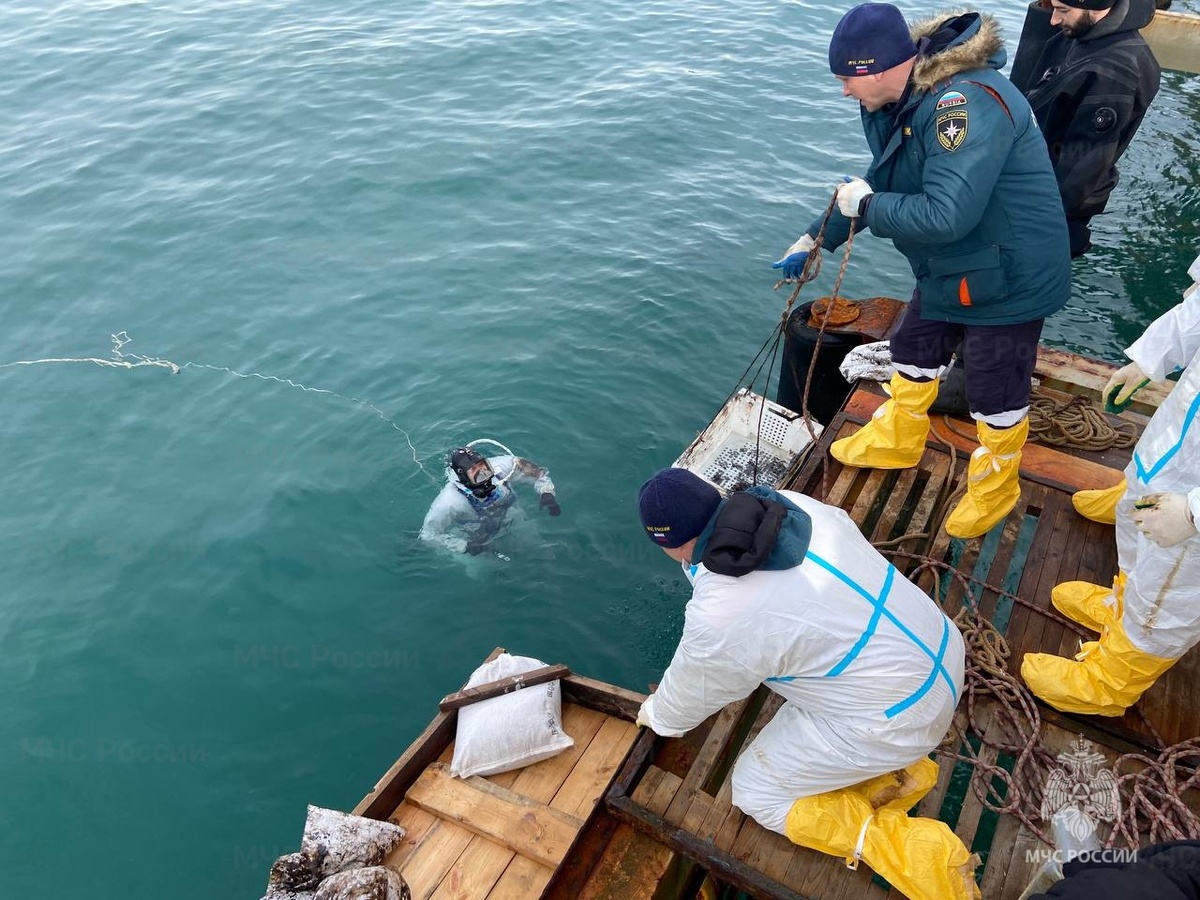 Водолазы МЧС России продолжают обследовать акваторию Чёрного моря в зоне ЧС