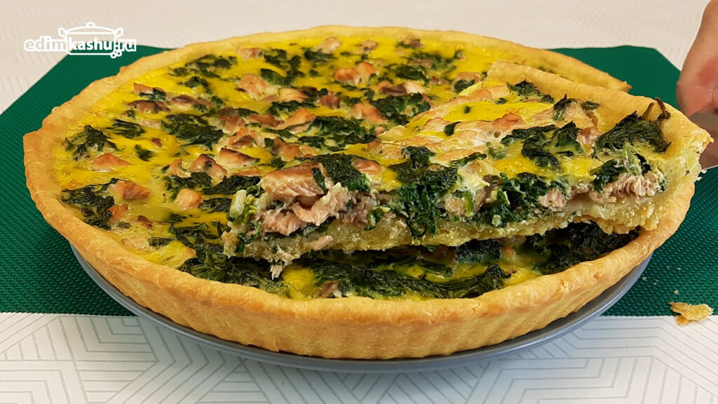 Заливной пирог с рыбой или Киш с лососем и шпинатом — очень вкусная выпечка для повседневного меню. Такой открытый пирог подойдёт и для праздничного стола. Он неизменно хорош как в горячем, так и в остывшем виде! Рецепт: