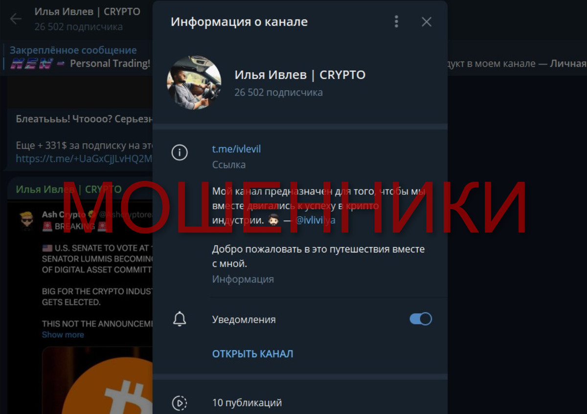 Телеграм-канал "Илья Ивлев | CRYPTO" — отзывы и разоблачение