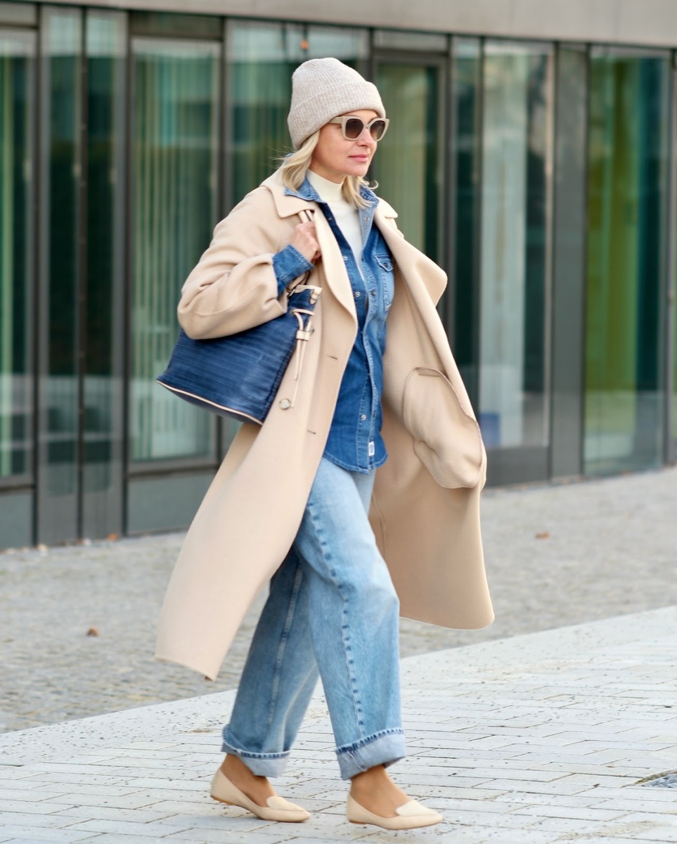 А вот даме 50+ нужно по максимуму внедрять в гардероб спортивные элементы. Например, кеды, бейсболку, свободные джинсы и, конечно же, бини.