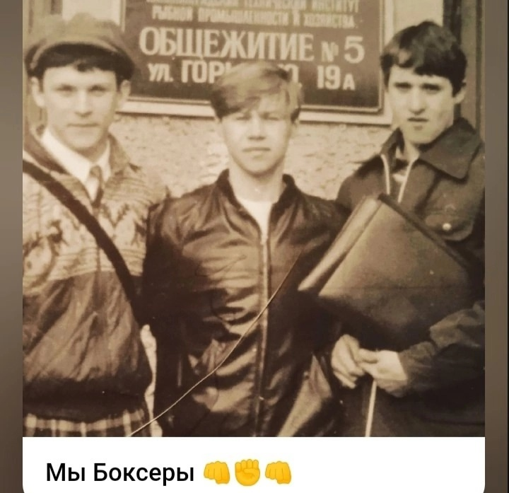 МЫ - БОКСЕРЫ Скопировал фото 1986 года со странички ВК у моего друга, Мастера спорта по боксу, хорошего тренера по боксу в Таганроге - Николая Цурика (в центре) Николай Цурика. Слева я с права Виталий Блиндус, тогда ещё перворазрядники, выступающие за студенческое спортивное общество "Буревестник", потому что учились мы в Калининградском техническом институте рыбной промышленности и хозяйства, на ихтиофаке. Тренировались у тренера Валерия Михайловича Кима. У всех судьба была разная.