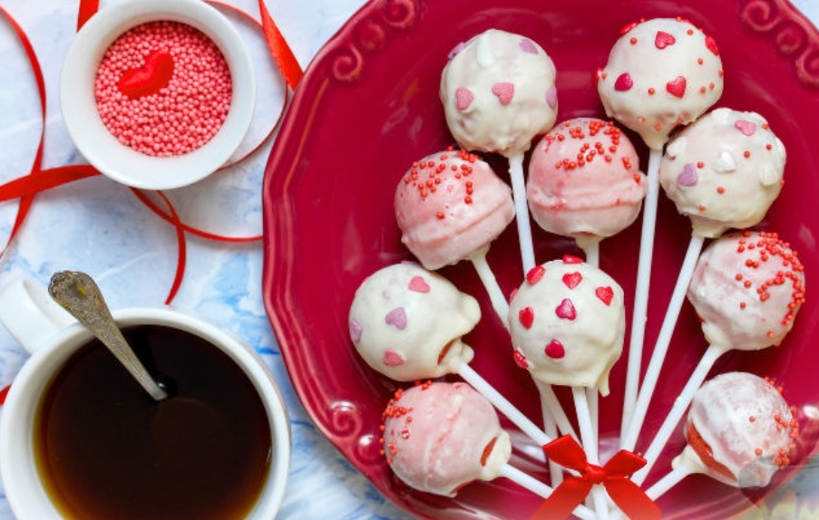 🍽️5 порций ⏰1 час 30 мин Кейк-попсы - это шарики из бисквитного теста в шоколаде, на палочке. Я предлагаю Вам приготовить яркие красные кейк-попсы в белом шоколаде - маленькие тортики "Красный бархат". Пошаговый рецепт с фото Подготовьте все необходимые ингредиенты для приготовления кейк-попсов "Красный бархат". Кроме продуктов понадобится специальная форма для выпечки кейк-попсов и палочки для оформления десерта. В миске соедините мягкое сливочное масло и сахар. Взбейте миксером масло с сахаром примерно минуту. Добавьте два яйца и снова всё хорошенько взбейте. В получившуюся массу просейте пшеничную муку и всыпьте чайную ложку разрыхлителя. Снова смешайте ингредиенты миксером на низкой скорости. В тесто добавьте красный пищевой краситель. Лучше использовать гелевый - его легко дозировать и тесто окрашивается равномернее. Перемешайте тесто до равномерного окрашивания, используя миксер на низкой скорости. Переложите тесто в кондитерский мешок. Теперь разложите тесто, отрезав кончик