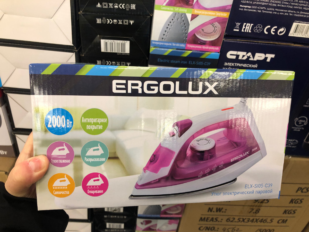 Всем огромный привет! Сегодня у меня для вас обзор из магазина Светофор. В продаже отличный ассортимент! Привезли нужные новинки. Из них есть утюг электрический ERGOLUX. Мощность 2000 Вт. Подошва утюга с антипригарным покрытием. Функции: сухая глажка, отпаривание, распрыскивание и самоочистка. Изготовитель Китай. Цена 1065 рублей.