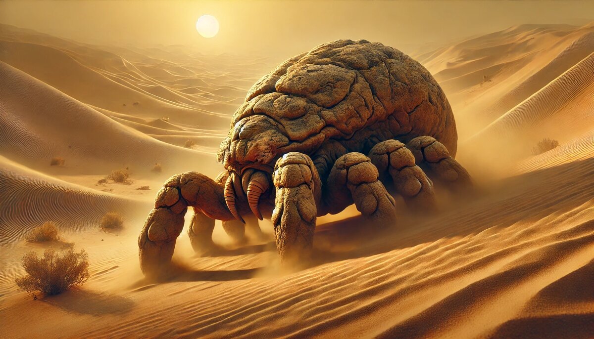 Песчаный Клещеголов — одно из самых коварных созданий, населяющих беспощадные просторы пустыни Саар'Хад. Этот малоподвижный хищник предпочитает не зарываться в песок, а притворяться большим камнем, благодаря своему округлому, покрытому шероховатым хитином телу. Он часто прячется среди валунов, становясь практически неотличимым от окружающей среды. Такое умение позволяет ему подстерегать добычу часами, дожидаясь удобного момента для атаки. Тактика охоты этого монстра не предполагает преследования жертвы. Вместо этого он использует свою смертоносную особенность — выстрел отравленным шипом на расстояние до ста шагов. Шип обладает невероятной пробивной силой и способен нанести смертельное ранение даже хорошо защищённой цели. Однако даже если жертве удаётся избежать критического попадания, яд, покрывающий шип, начинает действовать немедленно, вызывая паралич, превращая жертву в беспомощную добычу, неспособную оказать сопротивление. Песчаный Клещеголов способен выпустить до шести таких шипов за одну минуту, но, как правило, ему хватает одного точного попадания, чтобы обездвижить свою жертву. После успешной атаки существо медленно приходит в движение, его массивные конечности с трудом отрываются от песка, и он неотвратимо ползёт к добыче, дабы сожрать её, методично перемалывая мощными клешнями. Хотя Клещеголовы, как правило, ведут одиночный образ жизни, иногда, хотя и крайне редко, они охотятся группой. Закономерность таких случаев и с чем они связаны до сих пор не выяснена. И хотя в обычных обстоятельствах Песчаные Клещеголовы крайне редко нападают на караваны, предпочитая одиночные цели, в случаях когда они сбиваются в группу, опасность смертельного обстрела грозит даже большим отрядам. Такие атаки крайне редки, а потому всегда становятся большой неожиданностью. Говорят, что сам по себе ползущий по поверхности Клещеголов представляет собой впечатляющее зрелище за счёт огромных размеров своего шаровидного тела, покрытого бронёй, которую почти невозможно пробить обычным оружием.
