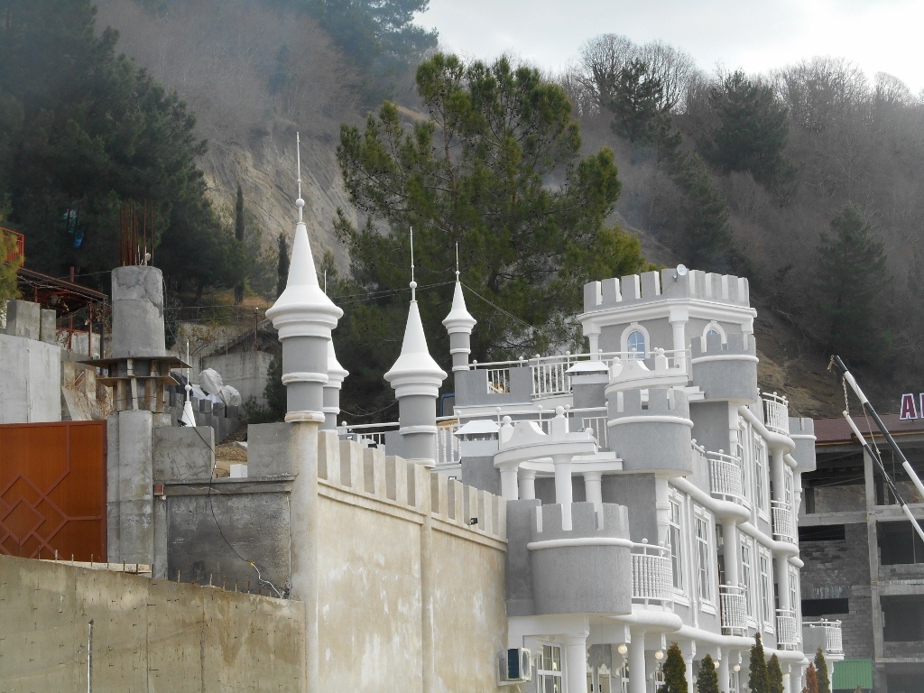 Пицунда в январе удивила теплом, относительным конечно, это не жара Индии и не тепло Египта, но все равно – снега нет совсем, море спокойное, тихое. Так приятно совершать долгие прогулки по побережью, где нет никого, абсолютная тишина. А воздух в сосновых рощах! Еще я обожаю засыпать и просыпаться под шум волн, поэтому и выбрала отель, похожий на сказочный замок, прямо на берегу моря.