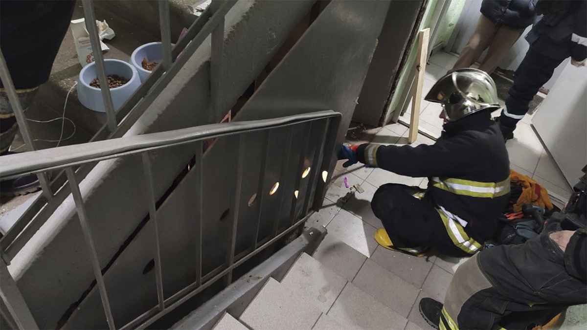 На улице Бутлерова в Москве в квартире проводили интернет. Мастер несколько раз выходил на лестничную клетку, и любопытная кошка Бесси, живущая в квартире, тоже вышла в подъезд. Кошка испугалась, быстро побежала вниз и забилась в нишу под лестницей. Хозяева нашли ее и попробовали вытащить, но упитанная домашняя кошка не пролезла между балясинами и застряла. Тогда владельцы обратились к спасателям. Пока экипаж ПСО «СпасРезерв» был в пути, они протолкнули Бесси обратно в нишу, чтобы она не травмировалась, но вытащить ее все равно не смогли. Спасатели поняли, что доступ к кошке есть только через «каморку дворника» под лестницей. Чтобы попасть в нее и демонтировать там фанерную перегородку, пришлось получать разрешение управляющей компании.Сделав все это, спасатели дотянулись до Бесси ловчей петлей, вытащили ее, посадили в подготовленную заранее переноску и передали хозяйке. «Советов по безопасности давать не будем, уверены, что мораль этой истории вы поняли», — подчеркнули спасатели.