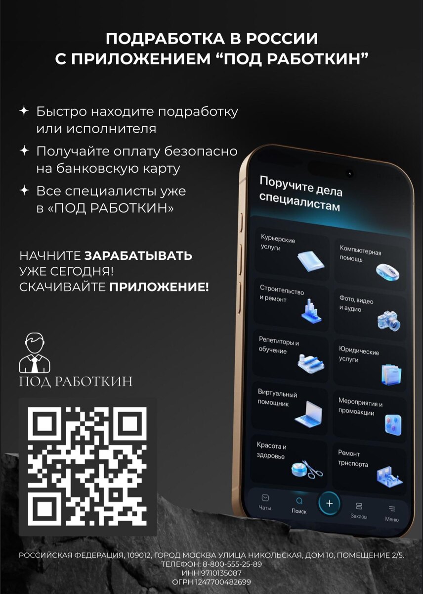 Подработка становится не просто дополнительным источником дохода, но и возможностью для личного и профессионального роста. Новое приложение «Под Работкин» делает этот процесс удобным, быстрым и безопасным для всех. Попробуйте уже сегодня и откройте для себя новые перспективы!