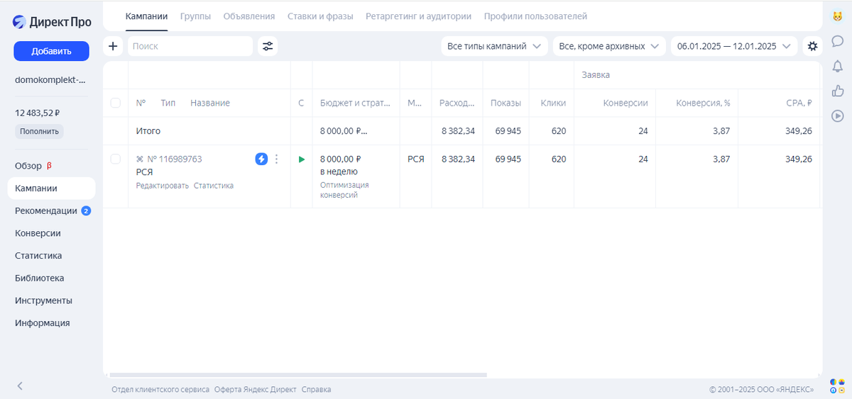 Пока конкуренты отдыхали, мой клиент получал дешевые заявки Статистика за неделю 06.01.25-12.01.25: Расход 8382 руб. Заявки 24 Цена заявки 349 руб. Связаться со мной и посмотреть кейсы можно тут https://vk.com/direktologyandexdirect
