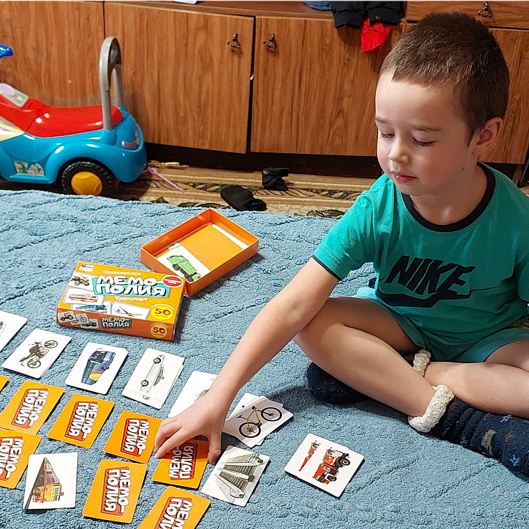 Правила: нужно перевернуть все картинки обратной стороной, каждый игрок по очереди переворачивает по две карточки. Если картинки не совпали, то переворачиваем картинки обратно. Если совпали, то забираем себе. Нужно найти одинаковые. Кто найдёт больше совпадений, тот и победитель. Игра помогает развить и тренировать память. Ребёнок учится запоминать то, что видит.
