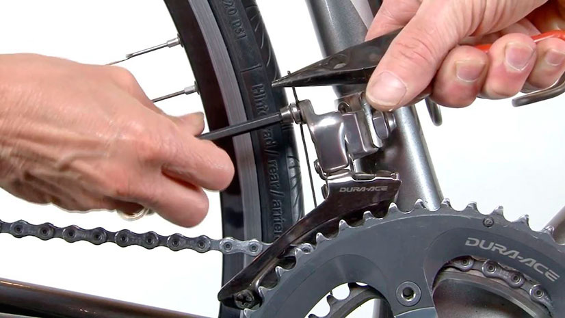 - Проверьте передний переключатель (если у вас есть). Переключите на все передние звезды и убедитесь, что цепь переходит без проблем. Если это не так, возможно, вам потребуется немного подрегулировать передний переключатель, используя те же винты (L и H) и натяжение троса.