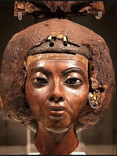 Этот бюст царицы Тии относится к числу наиболее выразительных скульптур древнеегипетского искусства.