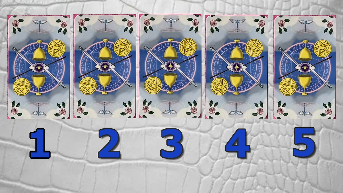 Сегодня я предлагаю вам выбрать одну из пяти карт, которые раскроют вам тайны ближайшего будущего. Это общее гадание, оно не предполагает детального разбора вашей ситуации. Поэтому просто доверьтесь своей интуиции и настройтесь на получение ответа.