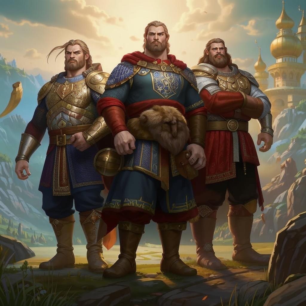 В неведомых краях, где солнце ласково касалось земли, раскинулось древнее государство, полное сказочных чудес и дивных историй. Здесь жили три брата-богатыря – старший, мудрый и сильный, средний, ловкий и отважный, и младший, быстрый и хитроумный. Вместе они защищали свою землю от беды и невзгод, пока однажды судьба не преподнесла им испытание.