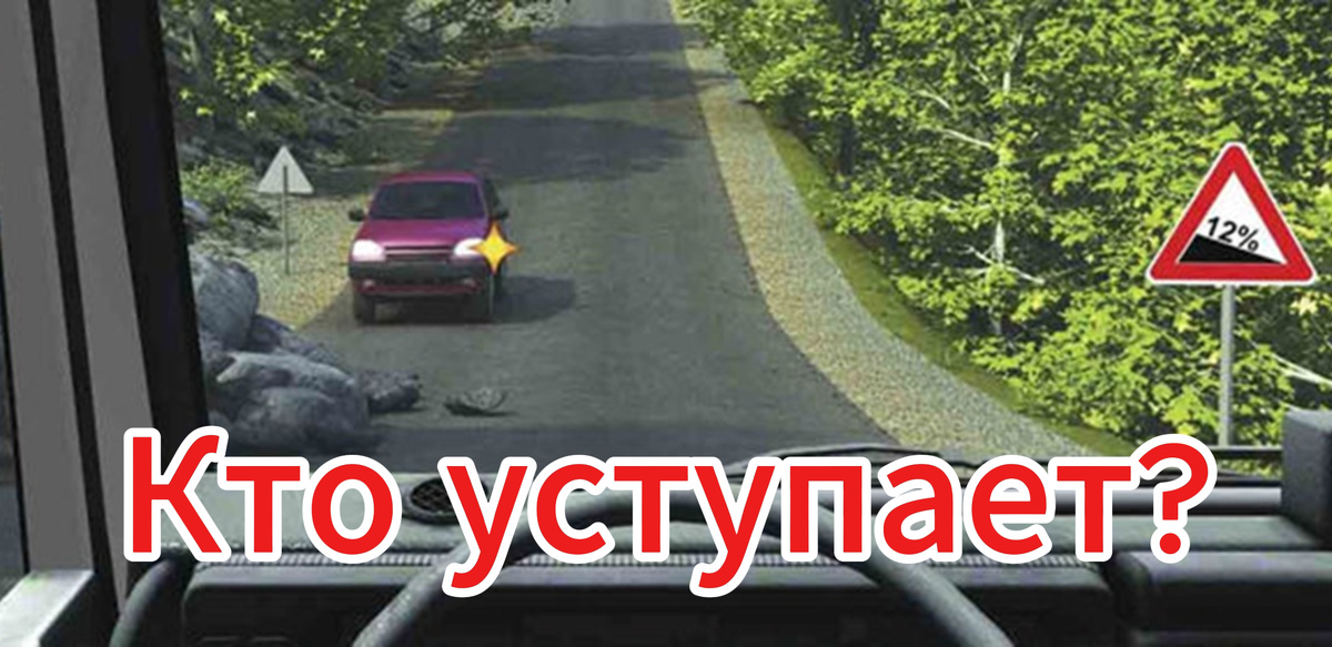 - Помните: согласно пункту 11.7 ПДД, автомобили, движущиеся вверх, имеют преимущество. Если вы едете вниз, обязаны уступить дорогу. - На спуске (знак 1.13):