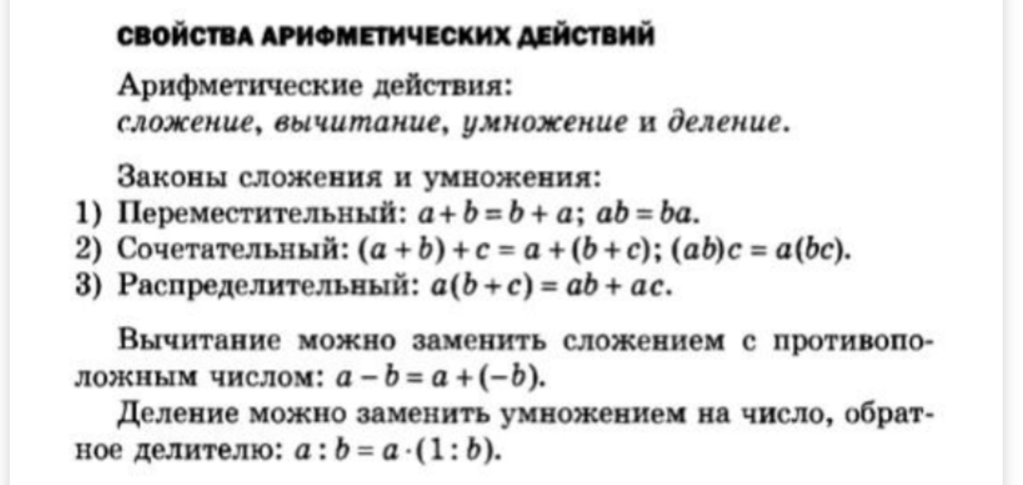 Какие арифметические действия ты знаешь? Правильно! Сложение, вычитание, умножение и деление. Запомни их свойства: А как работать со скобками? Запоминай: А если перед скобкой стоит знак умножить: Как раскрыть скобки, если перед скобкой стоит умножение? Если перед скобками стоит знак умножения, то каждое число, стоящее внутри скобок, умножается на множитель, стоящий перед скобками. При этом умножение минуса на минус даёт плюс, а умножение минуса на плюс, как и умножение плюса на минус, даёт минус. Таким образом, скобки в произведениях раскрываются в соответствии с распределительным свойством умножения. Пример: 2 · (9 - 7) = 2 · 9 - 2 · 7. а если знак минус: При умножении скобки на скобку: При умножении скобки на скобку каждое слагаемое первой скобки умножается на каждое слагаемое второй скобки, знаки ставятся согласно результату умножения. Пример: (с + d) (x − y) = cx − cy + dx − dy.