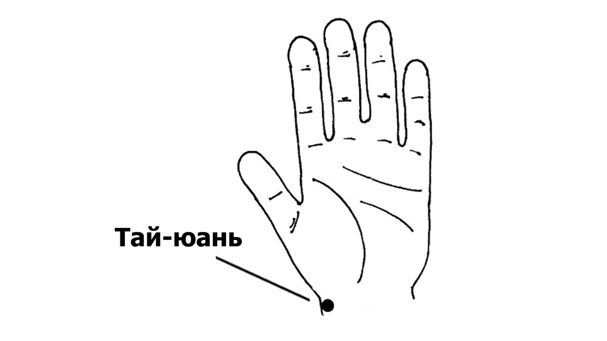Точка тай-юань («место скопления, бездна») расположена на ладонной стороне запястья, слева во впадине между сухожилиями.