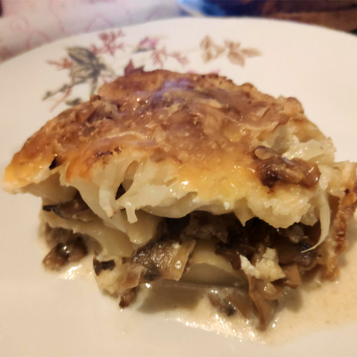 ✔ Цветная капуста (думаю, замороженная тоже подойдёт) – 500 г; ✔ Грибы (у меня свежие шампиньоны) – 300 г; ✔ Сливки (сметана, йогурт) – 150 г; ✔ Твёрдый сыр тёртый (у меня камамбер какой-то неудачный попался, пришлось пустить его в готовку) – 100 г; ✔ Репчатый лук - 1 шт.; ✔ Топлёное масло (для жарки) – 30 г; ✔ Соль, молотый чёрный перец – по вкусу; ✔ Агар-агар – ½ ч. л.; ✔ Панировка (я измельчила отруби) – 1 ст. л.; ✔ Растительное масло (для смазывания формы) – 1 ст. л. Капусту разобрать на соцветия и отварить в подсоленной воде до полуготовности. Грибы почистить, нарезать очень тонкими пластинками. Лук нарезать мелко. Грибы и лук жарить на топлёном масле до румянца. Если вы боитесь жареного, то просто потушите их вместе в соке, который выделят и грибы, и лук. Заправьте грибы солью и чёрным перцем. Я в грибы не добавляю другие пряности, чтобы не заглушать их запах и вкус. Форму для выпечки смазать растительным маслом, засыпать панировкой. Крупные соцветия капусты нарезать пластинками
