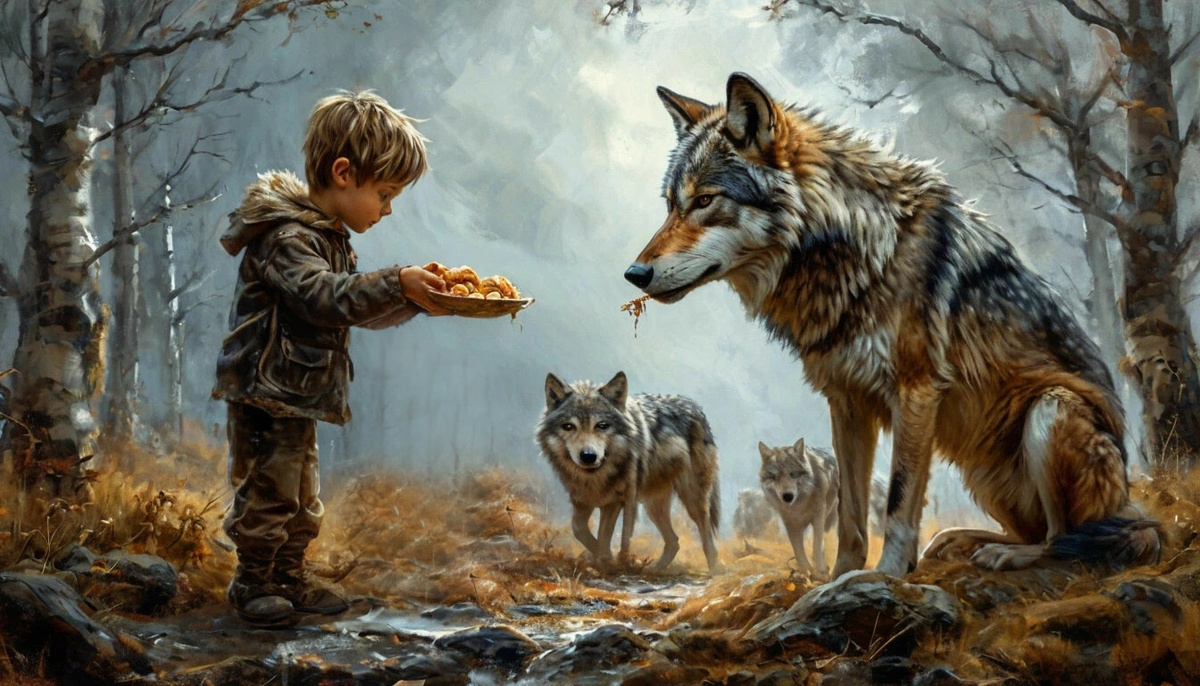 В одном древнем племени жил мудрый старец, который часто делился своими знаниями с молодыми людьми. Однажды, к нему подошел мальчик, полный тревог и вопросов. Он сказал: — Дедушка, в моем сердце бушует война. Я чувствую гнев, зависть, страх и печаль. Но иногда приходит радость, любовь и надежда. Как я могу понять, что происходит внутри меня? Старец улыбнулся и сел рядом с мальчиком. Он начал рассказывать: — В каждом из нас живут два волка. Один волк — это волк тьмы. Он символизирует гнев, зависть, страх, печаль и эгоизм. Этот волк постоянно пытается завладеть нашим сердцем, подталкивая нас к негативным мыслям и действиям. — А второй волк — это волк света. Он олицетворяет радость, любовь, надежду, мир и доброту. Этот волк вдохновляет нас быть лучше, делиться счастьем и заботиться о других. Мальчик внимательно слушал, и, наконец, спросил: — Но какой волк победит, дедушка? Старец посмотрел на него с мудростью в глазах и ответил: — Побеждает тот волк, которого ты кормишь. Если ты будешь по