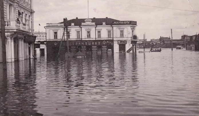Наводнение в Омске в 1928 году стало одной из самых разрушительных катастроф в истории города. Оно показало, насколько уязвима городская инфраструктура перед природной стихией, и надолго осталось в памяти местных жителей. Весна того года выдалась холодной, из-за чего лёд на Иртыше и его притоках таял очень медленно. Толщина ледяного покрова достигала полутора метров, а осенний ледоход 1927 года оставил большие заторы, что только ухудшило ситуацию. Вода начала подниматься в начале мая и 5-го числа достигла рекордной отметки — 778 сантиметров. В районе деревень Захламино, Николаевка и Харина скопились огромные ледяные глыбы. Старые ледорезы не выдержали напора, создавая угрозу для зимовавших судов. Льдины сносили мосты, разрушали постройки, а вода затапливала целые улицы и районы города. Лёд на Иртыше начал двигаться 3 мая, и из-за заторов уровень воды резко поднялся. К 5 мая ситуация стала критической — затопило центр города, включая улицу Ленина, Любинский проспект, Мокринский фарштат
