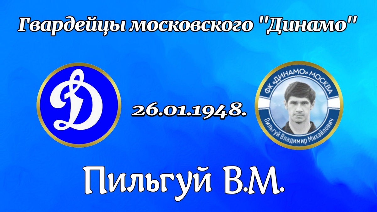 26 января 1948 года родился ПИЛЬГУЙ ВЛАДИМИР МИХАЙЛОВИЧ Один из лучших вратарей страны и московского «Динамо» 70-х годов. Выделялся отличной реакцией, мягкой пластикой движений, взрывной прыгучестью, завидной координацией движений. Отточенная вратарская техника, эффективные броски в углы ворот, высокие прыжки-полёты за верховыми мячами и навесами в штрафную площадь были отличительными приёмами его действий. Его называли преемником Льва Яшина. 27 мая 1971 года, на глазах переполненных трибун Лужников, величайший вратарь современности вручил ему свои перчатки, покидая поле в ходе прощального матча. Яшин, готовясь к расставанию с футболом, выбрал Владимира Пильгуя своим наследником среди кандидатов на место в воротах «Динамо». И не ошибся. Пильгуй оказался талантливым учеником: на тренировках с молодым воспитанником днепропетровского «Днепра» Яшин восхищался его трудолюбием, восприимчивостью к советам и тренерским указаниям. Яшин передал свой пост в надежные руки. Более 11 лет Пильгуй о