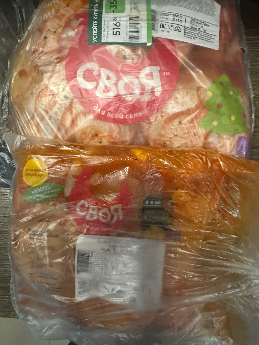 Эту покупку я сделала в четверг. Уже давно приметила, что в четверг продавцы выкатывают тележки с продукцией с зеленым ценником - накануне новой большой поставки перед выходными. Поэтому стараюсь попасть в этот день в свой магазин. Но не только ожидала продукты, немало и других посетителей дружно в ногу подошли к ним. Я взяла достаточно много мясных полуфабрикатов, сроки годности которых были обозначены 24-25-м числом, и сложила в морозилку Цыпленок табака и курица в соусе Колбаски, их, кстати, сразу пожарила на ужин Колбаски от Мираторга Чевапчичи от Мираторга. На этой же картинке три банки сельди и деликатесная грудинка, ее тоже пока сложила в холодильник Три скумбрии горячего копчения, потянули на 210 р Палтус и вареная колбаса, тоже сложила в морозилку. Рыба пойдет на бутерброды, колбаса на пиццу Еще колбаса на пиццу, сосиски Клинские и филе индейки, все сложила в морозилку Молочная продукция Еще молочная и яйца Печенье, кексы и колбаса, у нее срок годности аж до 3-го февраля.