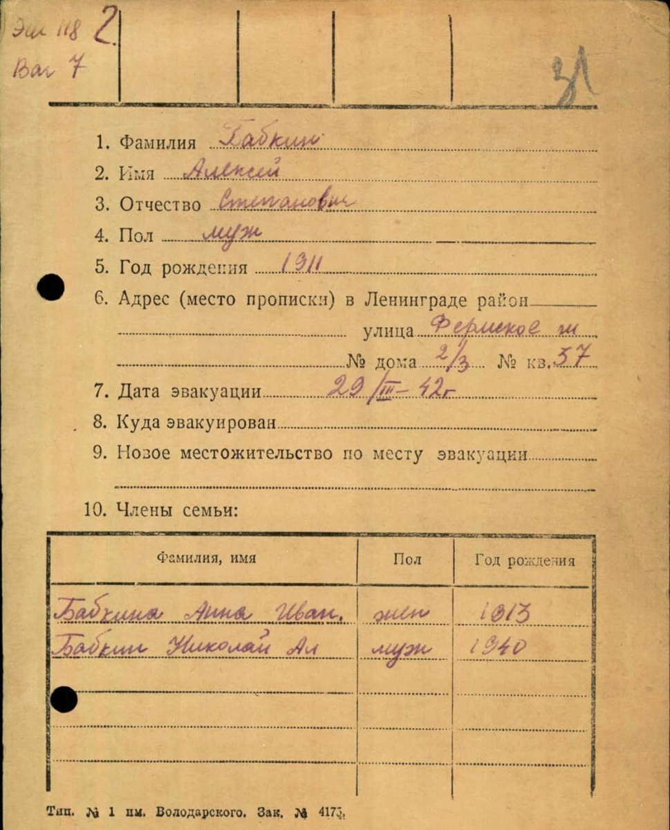 К 70-ти летию Победы было отсканировано много архивов и я смогла найти эвакуационный листок моих прабабушки и прадедушки. Они прожили в осажденном городе 202 дня и 29 марта 1942 года были эвакуированы со своим маленьким сыном (моим дедушкой).