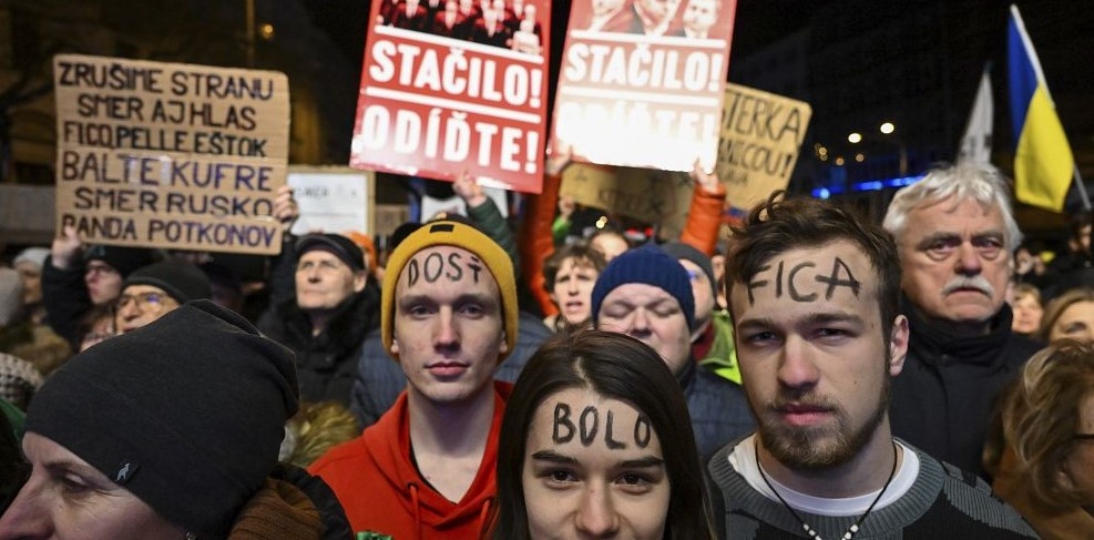 Словацкий новостной сайт Aktuality сообщает, что в Братиславе и крупных городах республики – волнения. Власти говорят, что в стране предпринята попытка государственного переворота. В беспорядках принимают участие около 60 тысяч человек (представители бунтовщиков дают почти вдвое завышенные цифры). «Майдан» организован идентично украинскому сценарию, и даже организатором и координатором беспорядков выступает движение «Мир Украине». Лозунги бунтовщиков ожидаемые: «Правительство Фицо в отставку!» и «Словакия – это Европа!» Оппозиция нагнетает обстановку, спекулируя на том, что действующее правительство Словакии рассматривает Россию как партнера. От властей требуют не вести переговоры с Кремлем, хотя разрыв отношений с РФ лишит страну топлива и взвинтит цены на отопление. Напомним, сам Роберт Фицо в конце прошлого года ездил в Москву для встречи с российским президентом Владимиром Путиным, а в январе текущего года Россию посетила официальная Делегация Словакии во главе с вице-спикером парл