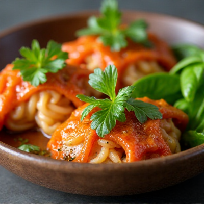 - Выложите фаршированные кальмары на противень, застеленный пергаментом, и запекайте 10-15 минут, пока сыр не расплавится и не подрумянится.