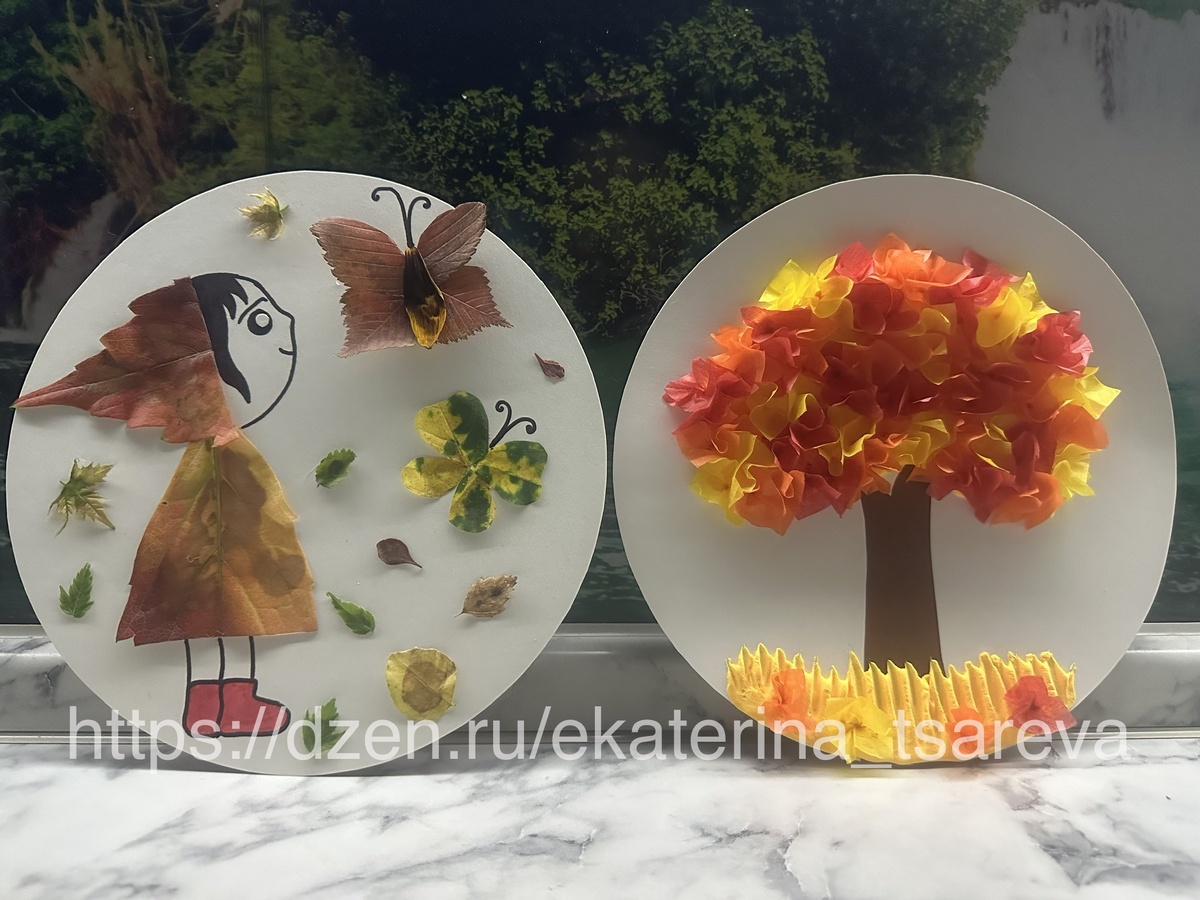 Материалы: осенние листья, фломастеры, картон, клей, ножницы. Воздушный пластилин, стилус, цветная бумага, клей, ножницы, картон, вилка.