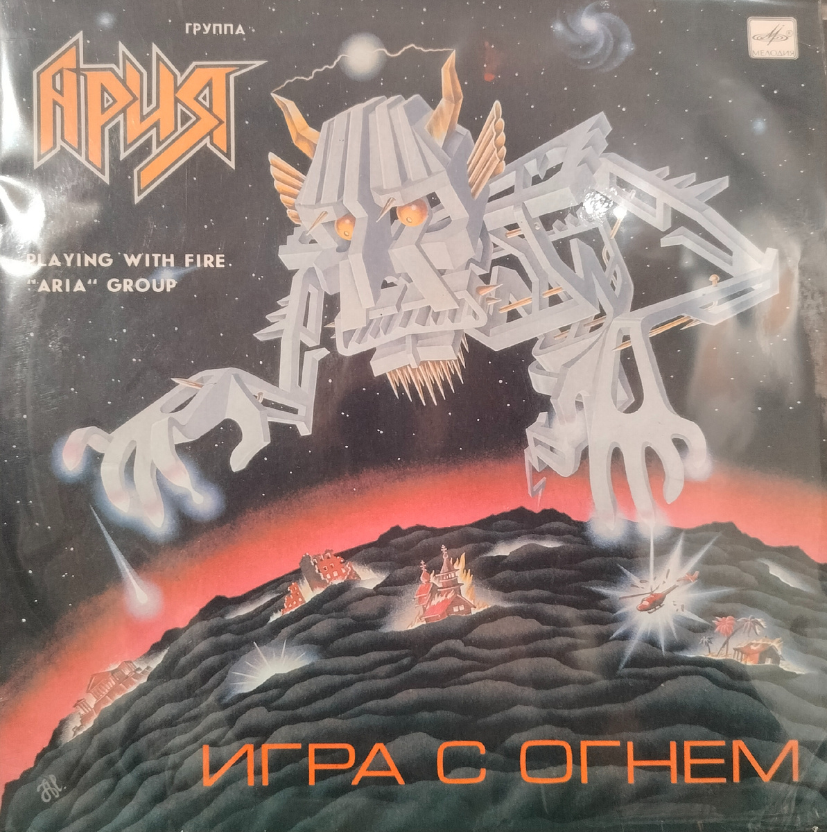 Первое что хочется отметить, это исполнение обложки, на английском языке идёт надпись: "Playing with fire "Aria" group" такое ощущение что его за кардон продавать собирались. Смешно, зачем там ещё один Iron maiden.