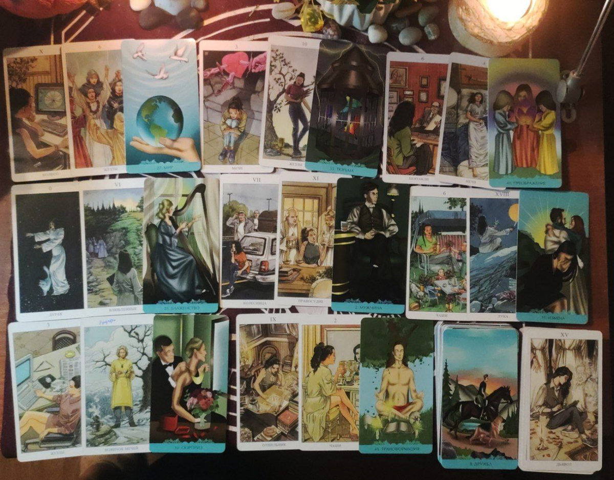 Дно колоды — Дьявол, Дружба. Фоном данного расклада выходят карты, которые показывают, что вы вступаете сейчас в такую жизненную полосу, где жизнь потребует от вас переоценки ценностей вопреки вашим желаниям и первоначальным установкам. И тогда вам придется отбросить романтику, отбросить ваши чувства и эмоции, чтобы увидеть конкретику и оценить результаты по вашим личным сомнениям. И именно этот ваш поступок поможет вам свернуть в ту сторону, где вы сможете начать свой новый жизненный этап, на котором сможете встретить как новых друзей, так и нового партнера для полноценных, гармоничных, семейных отношений. Квинтэссенцией расклада выходит карта Повешенный, которая показывает, что сейчас вы находитесь в сложных, зависимых отношениях, в которых вы начинаете ощущать себя жертвой, которая хочет, но не может что-либо изменить. Но изменить ситуацию вы, на самом деле, сможете, но для этого вам придется пройти период жизненных испытаний, чтобы понять и разобраться в ситуации, взглянув на нее под другим углом.