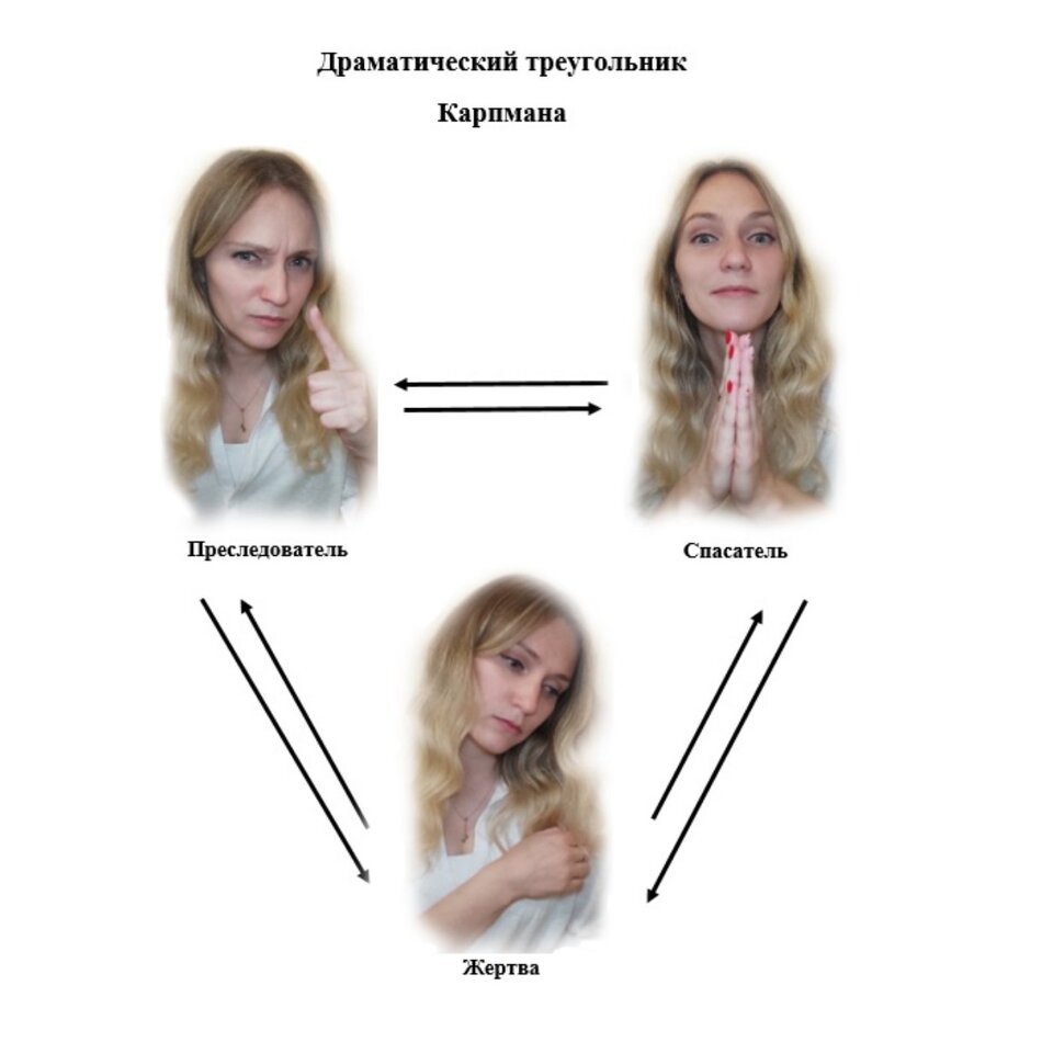 Если конфликты в отношениях повторяются, вы спорите об одном и том же , пытаетесь что-то объяснить, доказать, но вас как будто не слышат , и вместо обоюдного решения, вы испытываете обоюдное разочарование, то возможно вы попадаете в "драматический треугольник" или треугольник Карпмана.