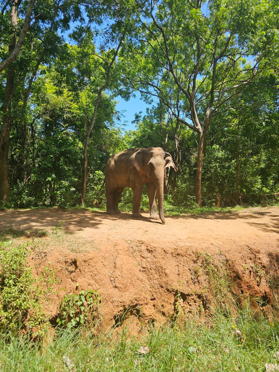 После того, как мы посмотрели кормление слонят, поехали дальше и по дороге несколько раз встретили взрослых слонов. На видео заметно ограждение: ров и натянутую проволоку.