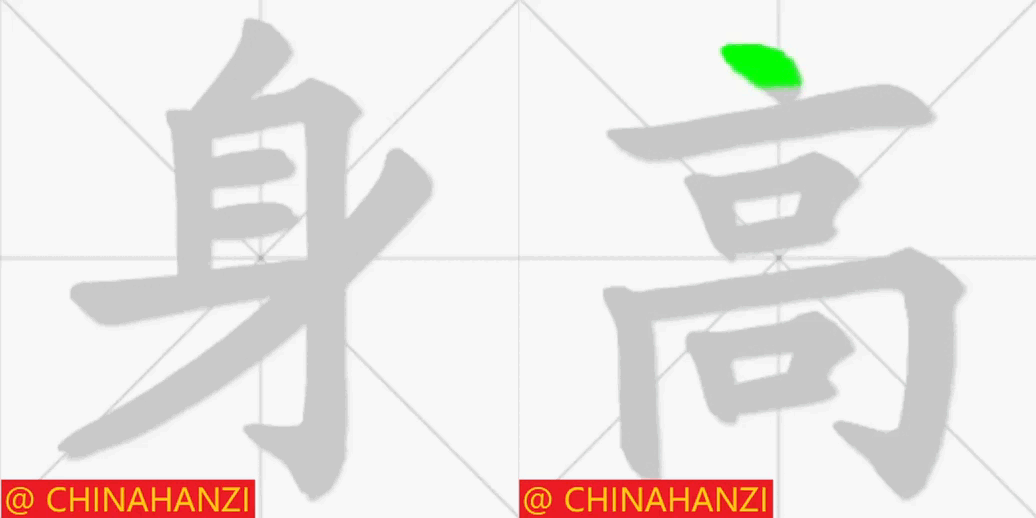 身高 [shēngāo] 1) рост (человека) 2) высокого роста, высокий 1 身 [shēn] тело (человека) = Является ключом. 2 高髙 [gāo] высокий = Является ключом. Тело высокий. РОСТ, ВЫСОКИЙ. ДОМАШКА: рост 2 метра (или любое словосочетание с разбираемым словом) мы в телеграм https://t.me/chinahanzi