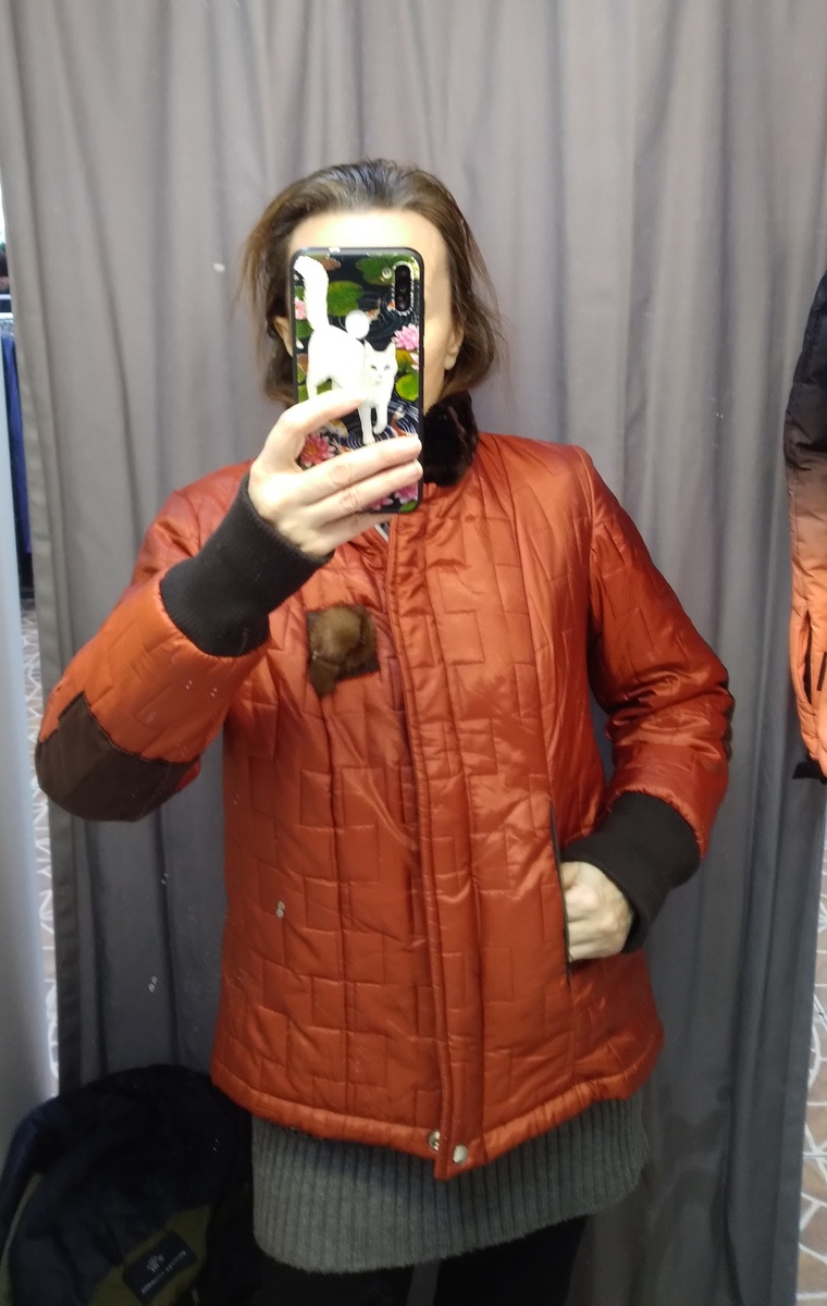 Здравствуйте, недавно мужу в Авито предложили обменять джинсы на гречку и макароны. Поднапрягла память и вспомнила, что это есть натуральный обмен ( хоть не зря историю учила ))), то есть я тебе новые горшки, а ты мне корзинки)). Если бы предложили в суровый безгречневый период, то, конечно, бы согласились, всё-таки для вечно худеющего человека гречка это средство первой необходимости😁, а сейчас уже неактуально и недефицитно. Обзор из Столичного гардероба, скидка 50%, а цены пишу полные. Демисезонная куртка яркого кирпичного цвета, есть высокий очень плотный меховой воротник и широкие манжеты. С замшевыми заплатками на локтях. И с такой фиговинкой с хвостиком на груди, фиговинка явно из натурального меха. Куртка с чудинкой)). Двубортный приталенный жакет. Высокий воротник нельзя отложить, он должен лежать на шее. Без подкладки. Есть запасные пуговицы вещь похожа на новую. Вискоза и синтетика. Куртка из плотной ткани, похоже, что это какой-то спортивный бренд, ведь все на липучках,