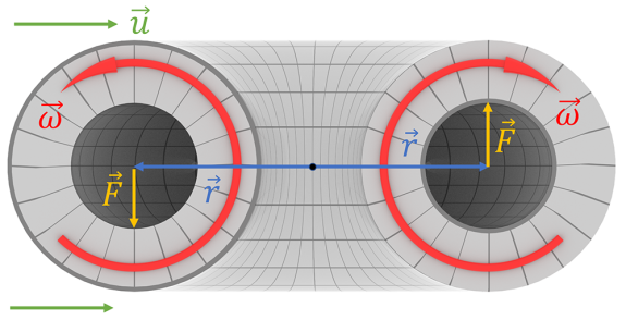 Учитывая существенную турбулентность эфира, стремление частиц к броуновскому движению и ещё целый ворох разных неучтённых факторов, разумно предполагать, что без внешнего воздействия ориентация всех частиц случайная. Другими словами, случайно взятое заряженное тело при движении не будет пытаться отклоняться. Но если мы упорядочим ориентацию зарядов в нём, то будет наблюдаться действие силы Лоренца. Напомню основной метод ориентации тороидальных вихрей (зарядов) внешним потоком (магнитным полем). Так действует сила Жуковского (F) на вращающееся контура в теле заряженных частиц. Обычная газовая механика. И чем более интенсивный внешний поток (u), тем более упорядоченными будут средние положения всех заряженных частиц. Тогда уже ориентированные по внешнему полю частицы будут испытывать всё ту же силу Жуковского (эффект Магнуса), но действующую в другой плоскости. Кольцевое вращение эфира по телу протона будет взаимодействовать с набегающим потоком подобно закрученному футбольному мячу. Си
