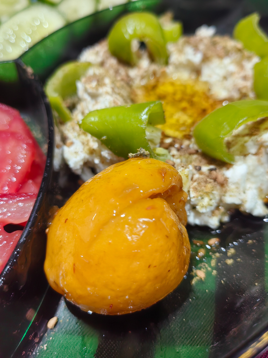 Сегодня суббота, выходной. Вчера муж сказал, что неплохо было бы в субботу пригласить к нам на обед брата и сестру. Я абсолютно не против брапа, он мне всегда был симпатичен, даже когда злится или ходит букой. Муж попросил, чтобы я написала или позвонила брату и пригласила их с сестрой и племянником к нам. Я написала брату вчера утром, но он так и не открыл мое сообщение, что конечно где-то порадовало, ведь один он не придёт. Он придет сами знаете с кем!)) Сегодня утром я проснулась и сразу спросила себя "что день грядущий нам готовит?" Муж сказал, что звонил брату утром, но тот не ответил. Предложила мужу завтрак вот такой же, какой делала ему вчера -с сыром, омлетом и овощами: Он согласился, но когда я пошла его готовить, вдруг резко сказал, что лучше заказать фасолевую кашу, фасолевые котлетки и жареный картофель. Музыкальной кашки и котлеток захотел. Так же он попросил порезать огурцы, помидоры и смешать с оливковым маслом, зеленым острым перцем и заатаром творог. Сдела