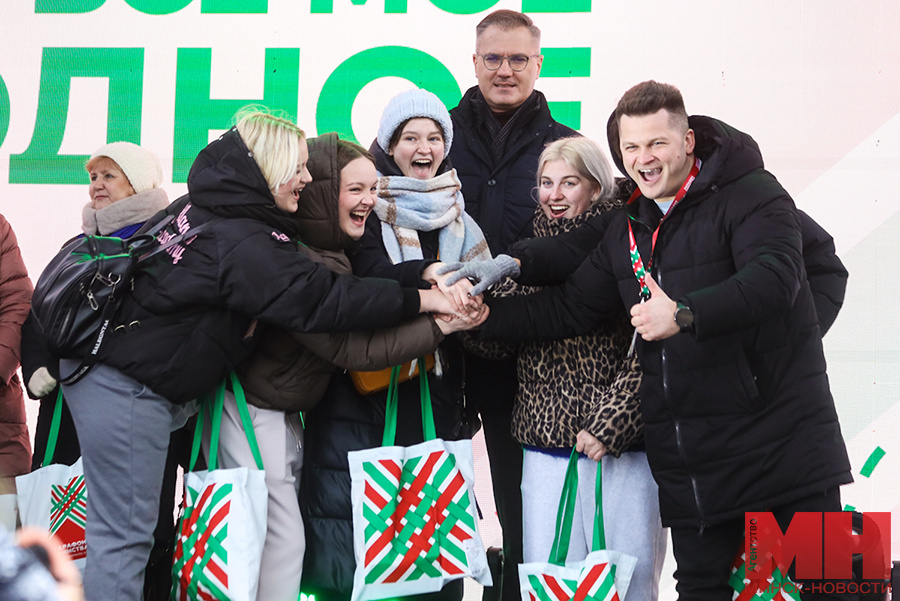 Традиционный квест БРСМ «Это все мое родное» объединил учащуюся, студенческую и работающую молодежь на «Марафоне единства» 25 января, передает корреспондент агентства «Минск-Новости». Формат квеста остался привычным: участникам нужно было создать команду в количестве от 5 до 10 человек, пройти регистрацию и по желанию выполнить домашнее задание. Сама игра состоит из десяти тематических станций, где нужно отвечать на вопросы, угадывать песни или танцевать, повторяя движения за волонтерами. Впрочем, столичный квест особенно выделился масштабами. В нем захотели поучаствовать более 200 команд — это абсолютный рекорд «Марафона единства». — Это завершающий квест «Это все мое родное». Мы проехали 15 городов, и вот, наконец-то, столица нашей Родины. Понимая, что команд очень много, мы приняли решение вместе с организаторами марафона проводить награждение не по итогам квеста, а буквально каждый час. Таким образом, у нас гораздо больше призеров и тех людей, которые получают заветные подарки. Мы