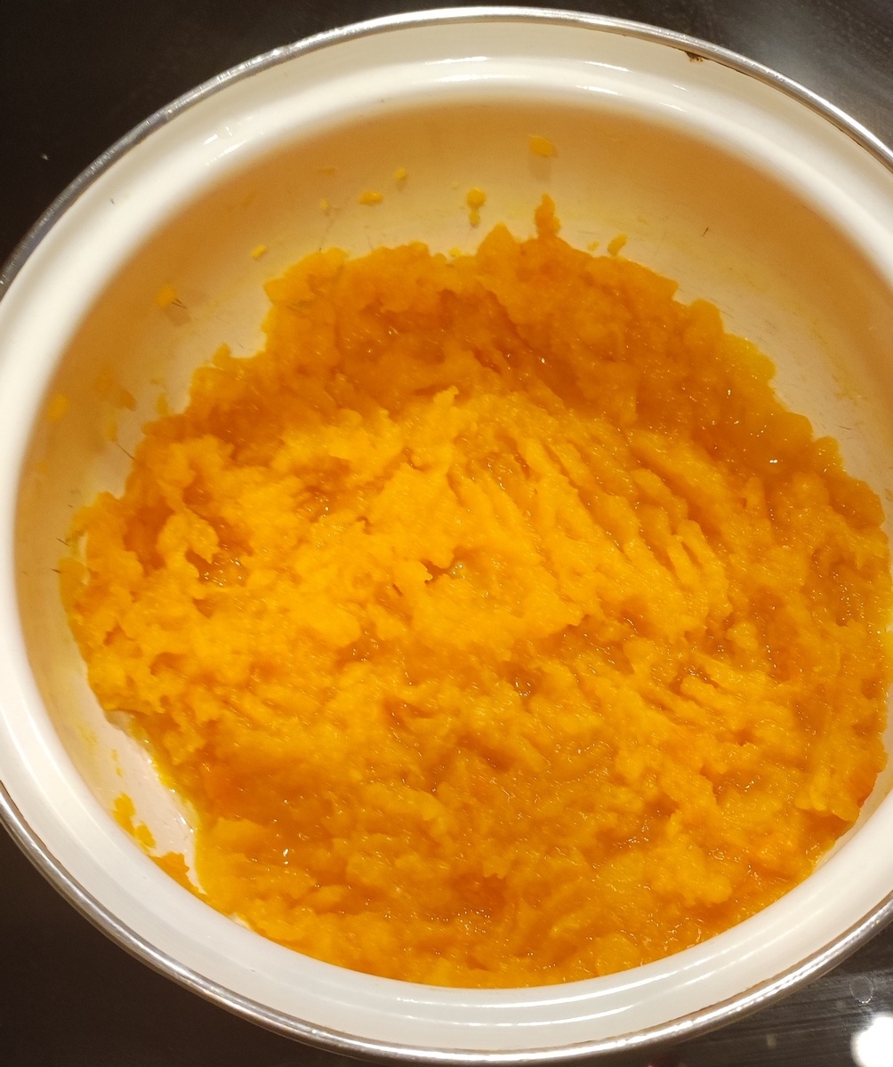 Мне зимой всегда не хватает ярких красок. Поэтому тыква и морковь становятся моими фаворитами для приготовления выпечки. Готовые блюда получаются такие солнечные. И так продолжаю подборку вкусных рецептов из тыквы. Кекс по этому рецепту получается влажный, плотный, в меру сладкий. Приготовление: Изюм промываем и заливаем кипятком. Делаем тыквенное пюре. Очищаем от кожицы и семян тыкву, режем небольшими кубиками, наливаем немного воды и ставим на средний огонь. Варить, пока тыква не станет мягкой, обычно это занимает минут 20. Затем разминаем вилкой тыквенные кусочки. Добавляем в пюре безглютеновую смесь, соду и изюм (предварительно слить и отжать с него воду). Перемешиваем Апельсин хорошо промываем. Натираем на мелкой тёрке только оранжевый слой, не затрагивая белый!!! Иначе тесто будет горькое. Разрезаем пополам апельсин, выдавливаем сок, добавляем в него натертую цедру и смешиваем с тыквенным пюре. Взбиваем миксером яйцо, сахар и подсолнечное масло. Добавляем к остальным продукт