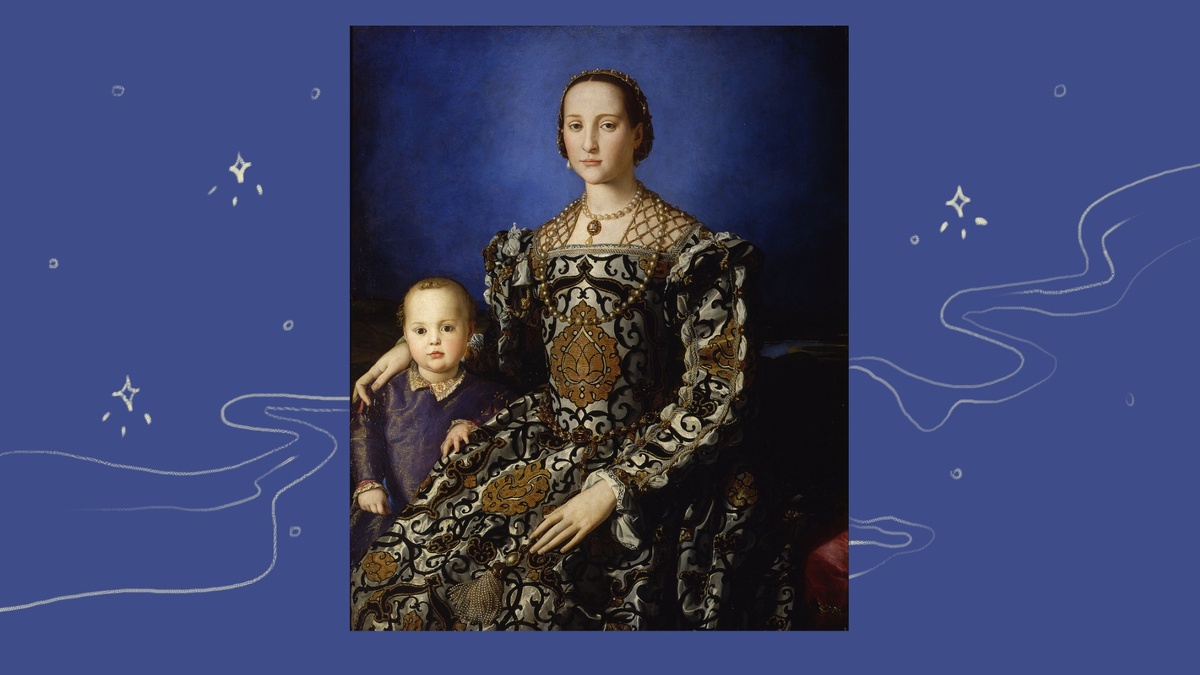 Самый известный образ Элеоноры Толедской также является одним из самых красивых платьев в истории искусства. Однако не стоит слишком отвлекаться на красоту картины. Этот государственный портрет служил, прежде всего, пропагандой Медичи. Все в нем тщательно продумано, чтобы создать образ герцогини и представить ее ранг, власть, богатство и материнство. Даже ее великолепное платье несет в себе много смысла.