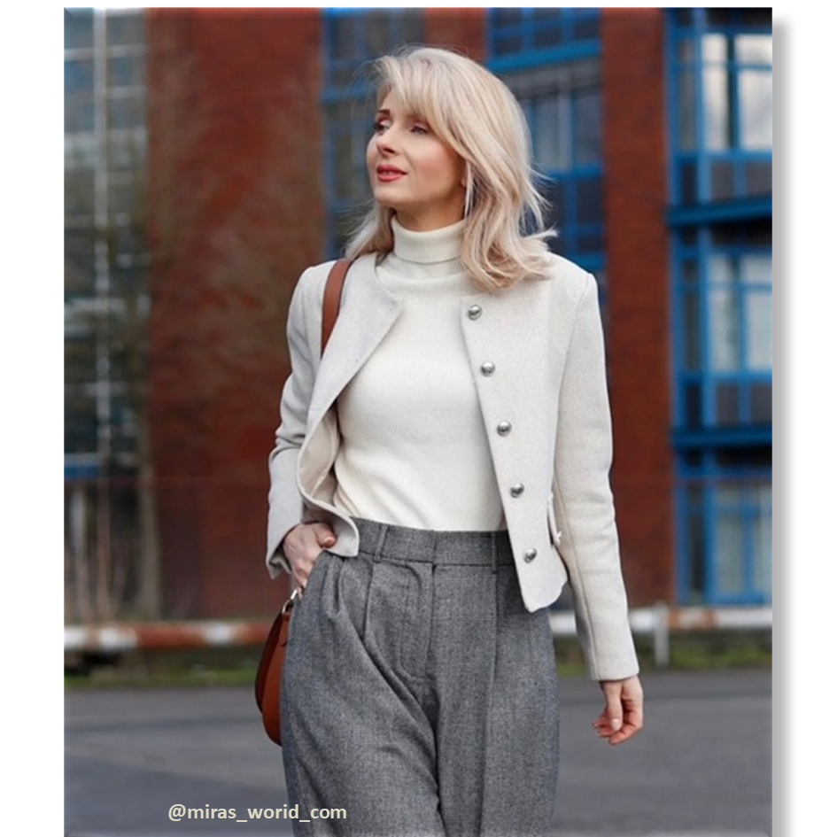 Несмотря на то, что сейчас зима, и у многих из нас на улице если не холодно, то точно прохладно, но выглядеть стильно и красиво хочется всегда. Правда ведь, девчата! И я вам тут, конечно, в помощь. Обратите внимание на модные сегодня укороченные жакеты из твида в стиле «шанель». Это стильно, это женственно, это великолепно смотрится, это еще и очень красиво рисует нашу фигуру. И к тому же, тепло! Купить их можно где угодно, в брендовых отделах массмаркета, на Вайлдбериз или Озоне. Обязательно попробуйте, примерьте! Это могут быть однотонные варианты или с принтом, чаще всего «клетка». А также вполне возможны и цветные вставки. Жакеты могут быть разных моделей. Например, с карманами или без карманов. Но помните, что карманы на груди или талии будут увеличивать эту часть тела, и если вам это не нужно, лучше выбирайте модель без них. И необязательно стиль «шанель». Очень красивы жакеты из твида и с воротничками, например, классическим английским. И носить такие жакеты можно хоть с чем – с
