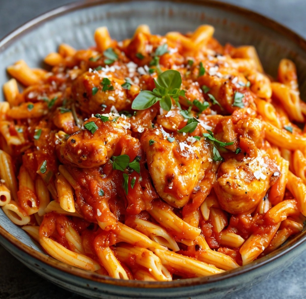 Описание приготовления: паста с томатным соусом и курицей — это сытное и вкусное блюдо, которое можно приготовить на обед или ужин. Готовится оно достаточно быстро и просто, но результат порадует даже самых изысканных гурманов. Ингредиенты: 300 г пасты (спагетти, пенне или любая другая); 200 г куриного филе; 1 луковица; 2 зубчика чеснока; 400 г помидоров в собственном соку (или свежие помидоры); 1 столовая ложка томатной пасты; соль, перец, базилик, орегано, сахар — по вкусу; оливковое масло для жарки. Приготовление: Чем полезно это блюдо: Паста содержит углеводы, которые являются источником энергии для организма. Куриное филе — это источник белка, который необходим для роста и восстановления мышц. Томаты богаты витаминами и минералами, которые полезны для здоровья. Блюдо достаточно лёгкое, но в то же время сытное, что делает его подходящим для повседневного рациона. Приятного аппетита!