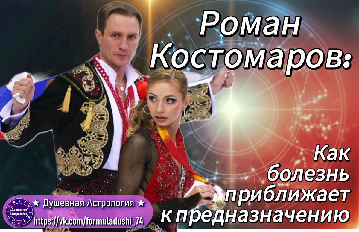 в звездный узор его судьбы, чтобы понять, как он пришёл к своему призванию. В его карте Меркурий находится в напряжённом тау - квадрате с узлами кармы, а также в соединении с Марсом. Роман Костомаров всегда был успешным спортсменом, получал золотые медали и награды. Он считал, что занимается своим делом.