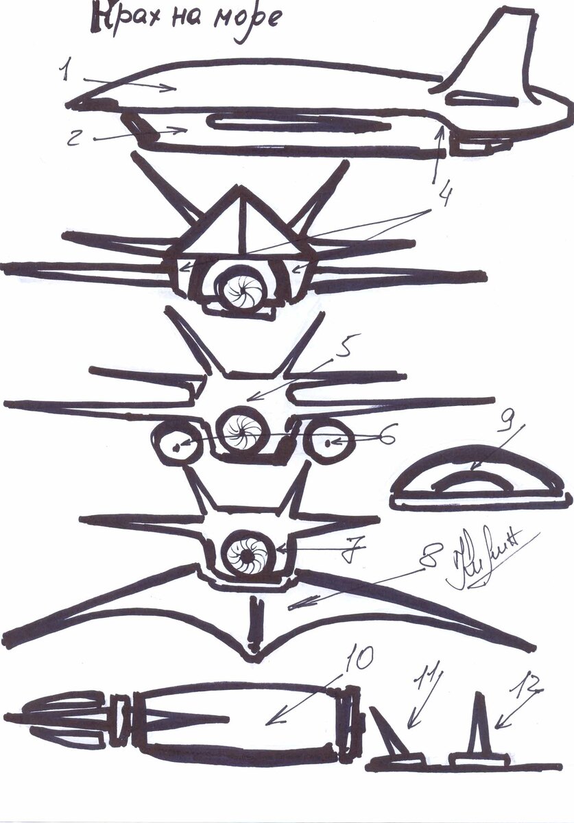 В настоящее время, в параллельных мирах, очень активно, проходит совместная программа России, Китая и Северной Кореи, под шуточным названием "Крах marine", по созданию различных систем, и вооружений, для уничтожения американских военно морских сил, и главные силы, брошены на уничтожение их авианосных групп. Раз в год, на дальнем востоке, во время совместных учений, проходят показательные стрельбы, новыми видами вооружений морской тематики. Эти показательные учения, проходят под самым пристальным вниманием, США. Я располагаю лишь несколькими разработками, и то только Российского производства. На рисунке 1, активно планирующая, универсальная бомба, и внешне определить, морского или сухопутного исполнения, просто не возможно. Носителями данной бомбы, а их 3 вида (большая средняя и маленькая), являются Реморы, от фирм Сухого, Миг, и некой самой маленькой от некой Новосибирской компании. Все три бомбы, имеют прямоточные двигатели, рисунок 4, и когда они сидят, каждая на своей Реморе, они