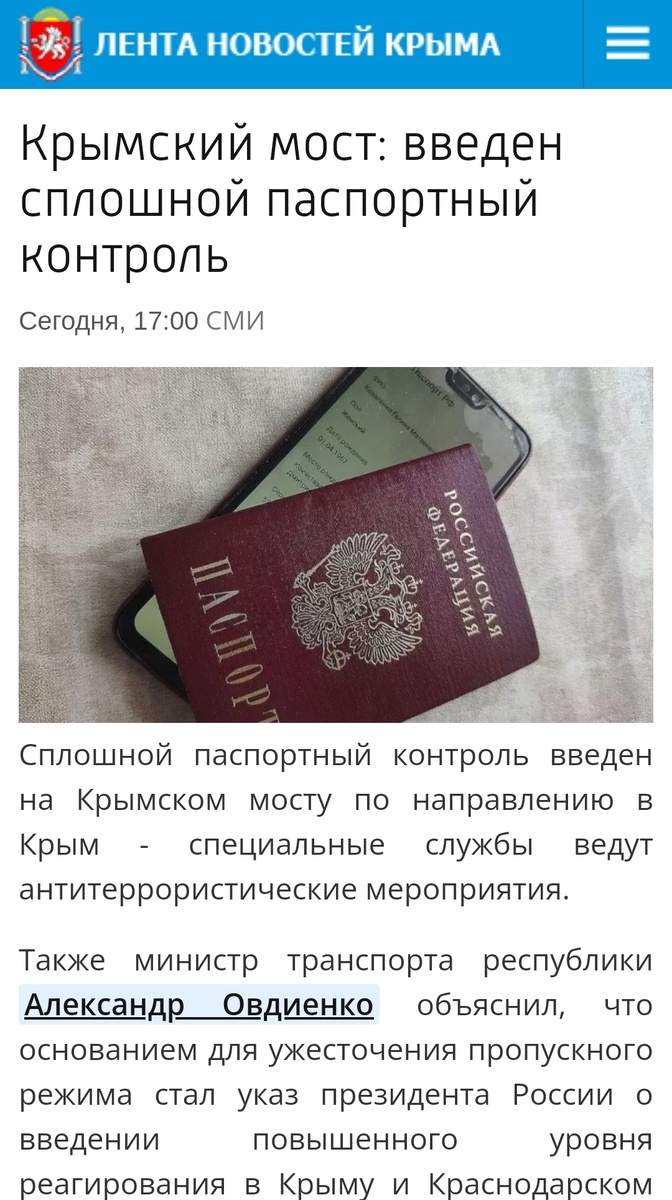 Я хорошо помню, как на этом канале ещё до полного его закрытия я несколько раз писала о том, что нужно перекрывать и мост и Чонгар. Мы здесь слишком хорошо помним, как может выглядеть зло и как оно мимикрирует под своих. Собственно, и мимикрировать незачем ему, потому что мы - это они, а они - это мы. Две стороны луны - тёмная и светлая. И сложно отличить и внешне и по языку, если только нутро не ковырнешь или паспорт не посмотришь... Мне тогда комментаторы (некоторые) пытались объяснить, что это делать нерентабельно и этого не будет. А я стояла на своём и убежала, что нужен жёсткий паспортный контроль иначе может быть поздно... Читаем... Думаю, что такой контроль нужен на всех федеральных трассах, электричках, поездах, автобусах. Почему? А разве вы не в курсе, что водители межгорода спокойно берут на трассе безбилетников? И проверку должны проводить не только ГАИ, потому что водитель просто платит гаишнику и едет дальше. У кого-то перед глазами танцуют розовые слоники? У меня нет.