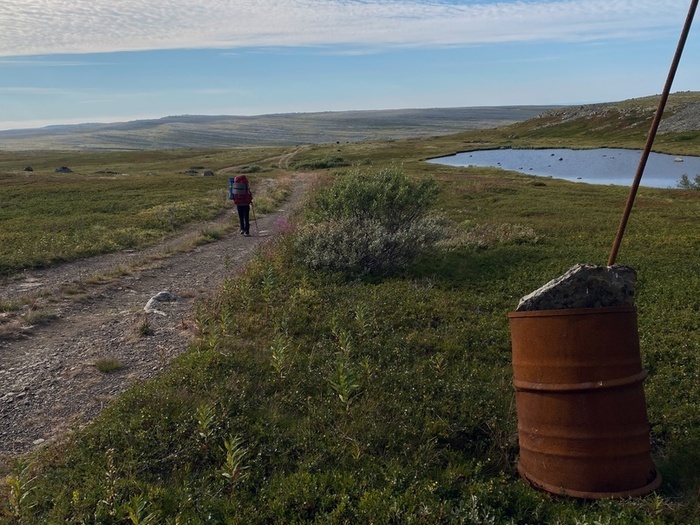 Через час ходьбы по дороге с правой стороны вдали показался — Северный Кильдинский маяк, чтобы не делать длинный обход по дороге, мы решили срезать и идти напрямую через тундру.