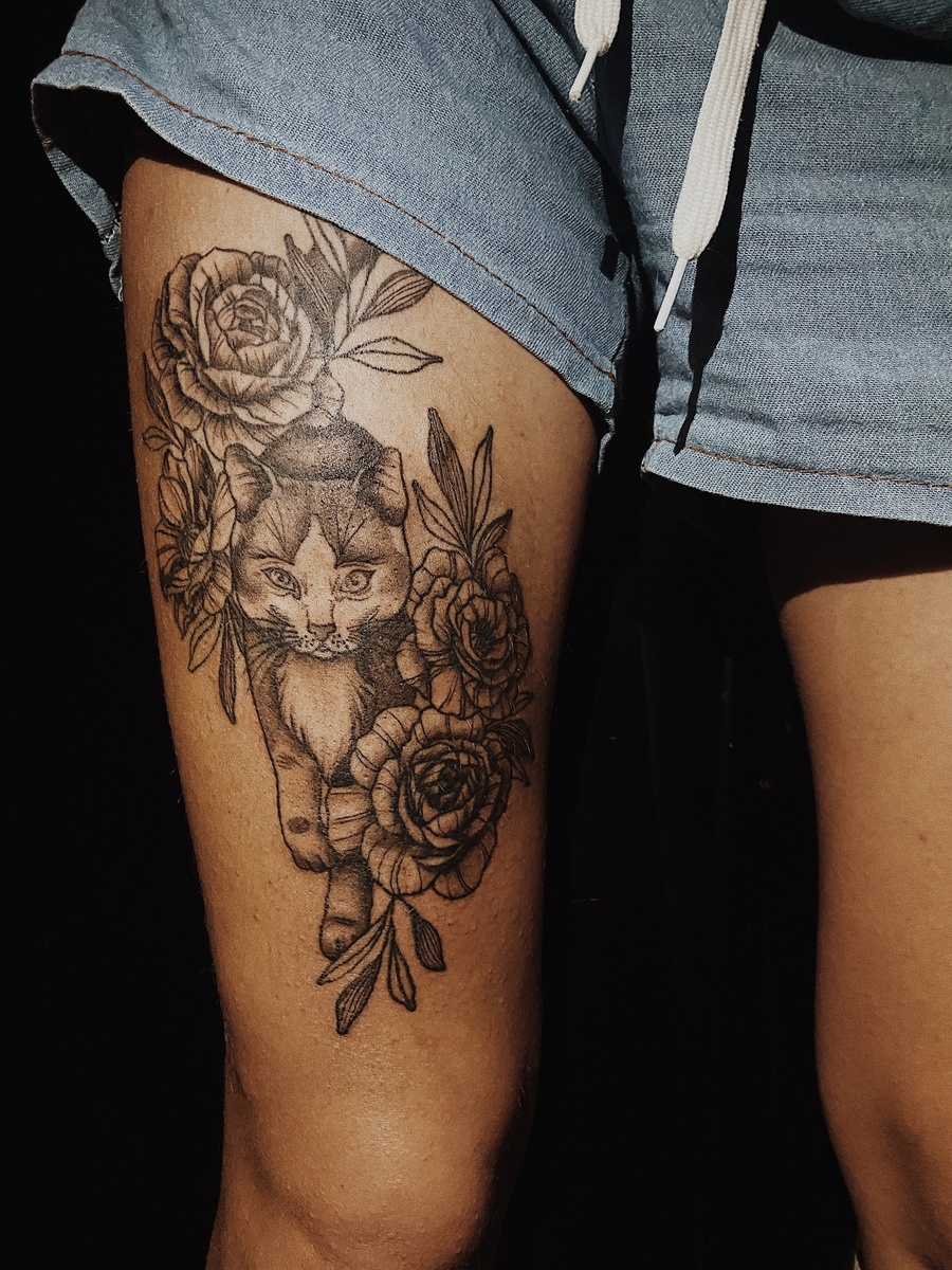 Сегодня хочу рассказать вам о одной из своих первых татуировок, которая запомнилась мне особенно. Ко мне обратилась молодая девушка с уже готовым эскизом. По счастливой случайности она наткнулась на рисунок кошки в цветах, который ей очень понравился. Более того, её собственная кошка была удивительно похожа на ту, что была изображена на эскизе. Это было настоящее совпадение, и мы решили не вносить никаких изменений в оригинальный дизайн. Поскольку это была одна из моих первых работ, я, конечно, переживала за результат, но в глубине души чувствовала уверенность, что всё получится так, как задумано. Я хотела, чтобы эта татуировка стала не просто украшением кожи, но и символом особого отношения девушки к её питомцу. Когда работа была завершена, я почувствовала огромное удовлетворение от проделанной работы. Девушка осталась очень довольна результатом, и её радость стала для меня лучшей наградой. Эта татуировка стала одним из тех моментов, которые подарили мне уверенность в своих силах и в