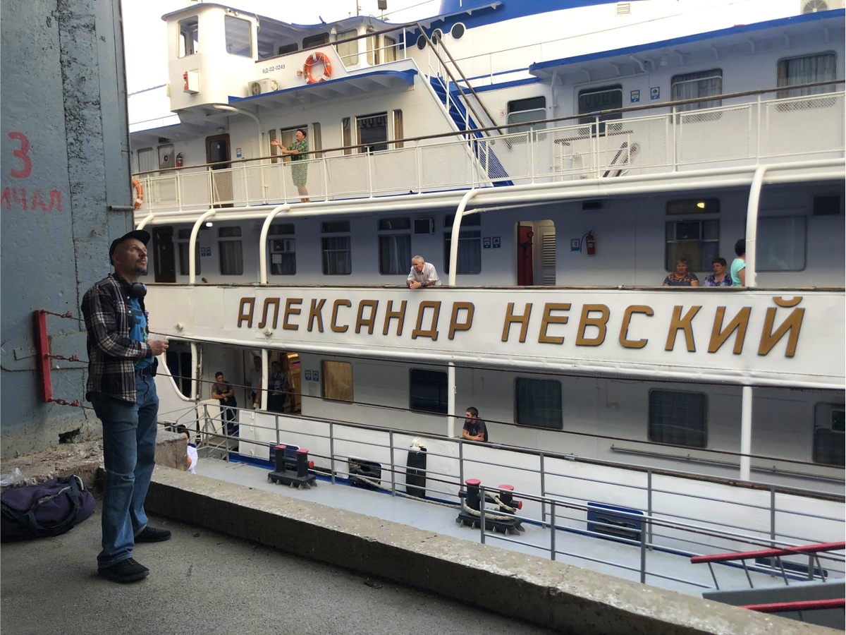 Наш трёхпалубный «Александр Невский» был спущен на воду в Германии в 1957 году. Тогда строили на века. Плавно идём по волнам, уходить с палубы не хочется, но завтра ранний подъём на зарядку и большая культурная программа.