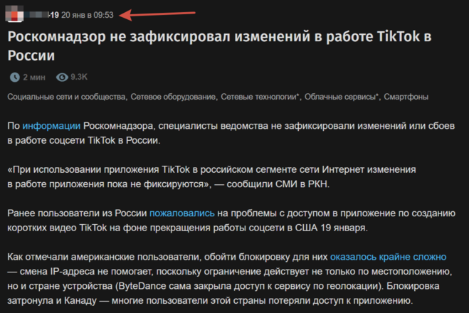 Работа TikTok в России была ограничена некоторое время назад по решению администрации приложения. Российские пользователи больше не могут полноценно использовать свои аккаунты для загрузки видео, просмотра контента, проведения трансляций и заработка. Сегодня, 25 января 2025 года, TikTok полностью прекратил работу в России. Пользователи, использующие старые версии или работающие «в режиме моде», столкнулись с чёрными экранами и бесконечными загрузками, как это произошло ранее с YouTube. На текущий момент причина блокировки остаётся неизвестной, и Роскомнадзор не комментирует ситуацию. Однако 19–20 января 2025 года заявлялось о нормальной работе TikTok. Существуют предположения, что сбой может быть связан с заявлением нового президента США Дональда Трампа о праве Америки на 50% акций TikTok. Возможно, владельцы приложения и американские власти пытаются урегулировать спор о правах, что приводит к техническим проблемам. Доступ к приложению TikTok в США был ограничен, и это может повлиять н
