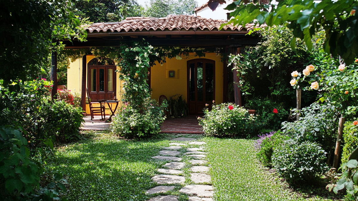 После того как мы познакомились с историей возникновения английского коттеджного стиля, давайте раскроем его главные секреты. Что делает такой сад по-настоящему английским? Какие элементы являются обязательными, и как правильно сочетать декоративность с практичностью? В этой части мы разберем основные принципы создания настоящего английского коттеджного сада. Начнем с архитектурных элементов. Ни один английский садик не обходится без арок, пергол и беседок, утопающих в зелени плетистых роз и других лиан. Важно помнить главный принцип: все рукотворное должно словно растворяться в природе, быть поглощенным зеленью. Если размер участка позволяет создать водоем, он должен выглядеть так, будто существовал здесь всегда. Легкая небрежность в оформлении берегов только приветствуется –это создает ощущение естественности. Сам дом в таком саду не доминирует над ландшафтом, а гармонично вписывается в него, буквально утопая в цветах и зелени. Ограждения традиционно делают из природных материалов —